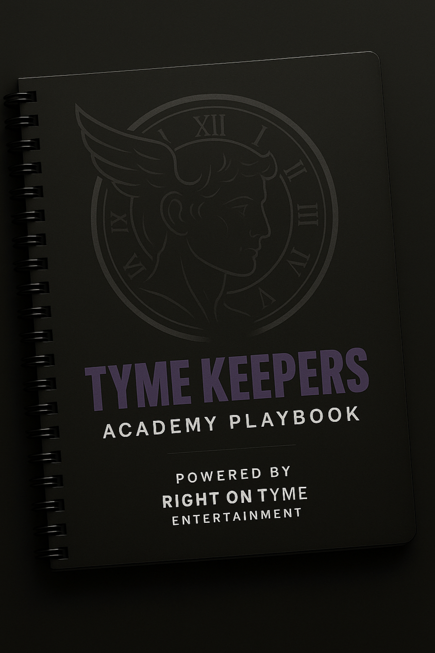 The TYME KEEPERS Playbook is your personal manual for success in music, business, and legacy — a step-by-step guide designed to help artists move from passion to purpose with clarity and confidence. More than coursework, it’s a strategic roadmap that teaches you how to develop your brand, understand the industry, release music intentionally, and build a career that lasts beyond trends.